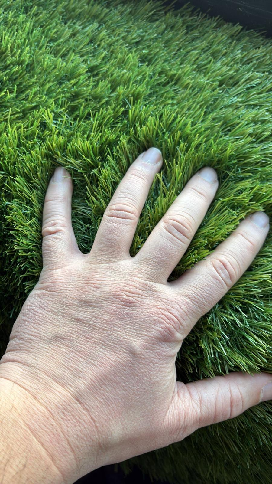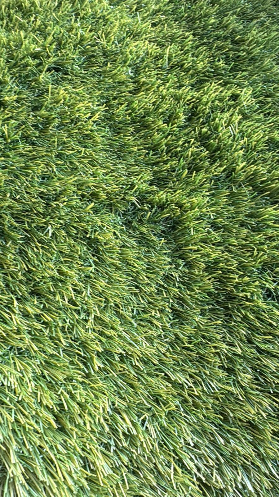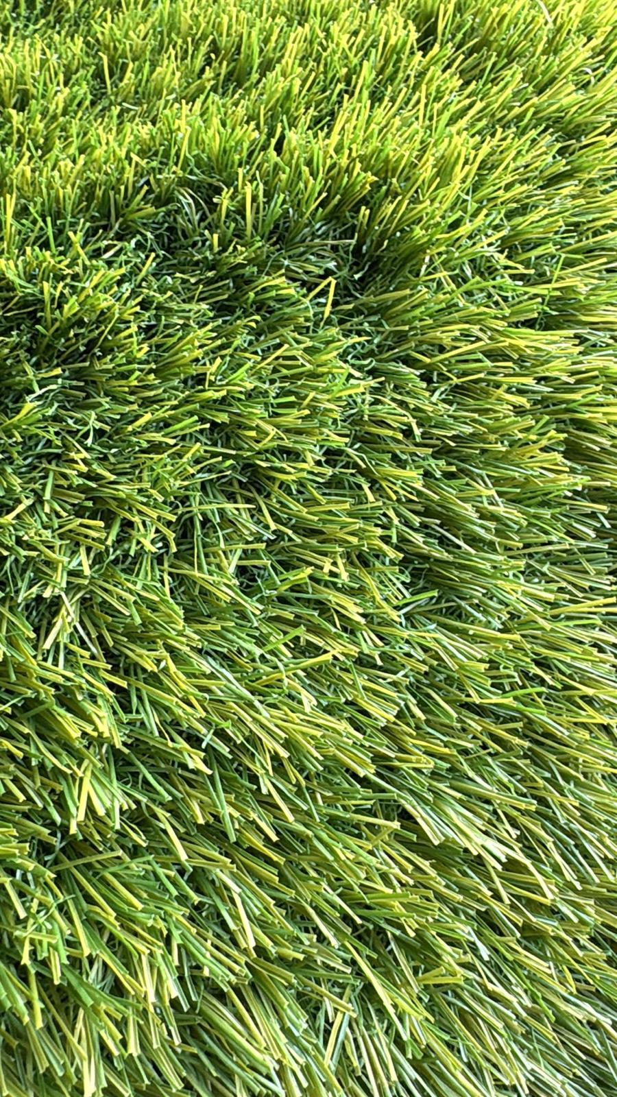 Gazon artificial premium 38mm cu fir C-Shape de 6.500 Dtex si densitate de 19.950 cusaturi/m2. 3 nuante de verde, fire drepte si carliontate verzi, suport PP Cloth + Mesh. Greutate totala 2.216 g/m2, rezistent UV, drenaj integrat. Disponibil in latimi de 2m si 4m.