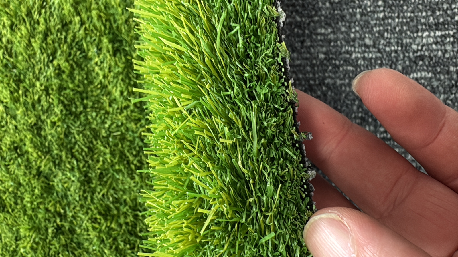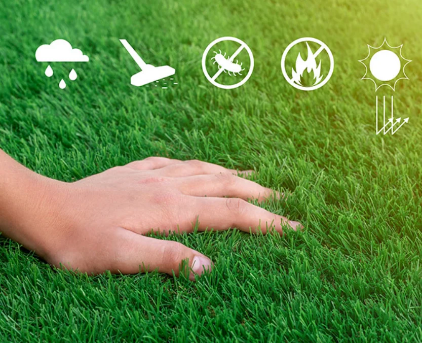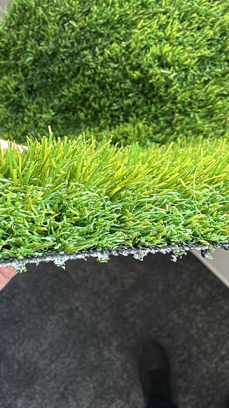 Suportul PP Cloth + Mesh Fabric asigura stabilitate dimensionala si drenaj eficient al apei de ploaie. Greutatea totala de 2.216 g/m2 garanteaza ca gazonul ramane ferm pe suprafata de montaj, rezistant la vant si deplasare.